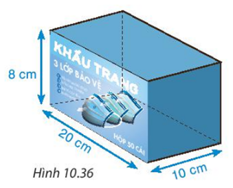 Một hộp đựng khẩu trang y tế được làm bằng bìa cứng có dạng một hình hộp chữ nhật, kích thước như hình 10.36.