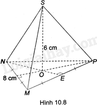 Cho hình chóp tam giác đều S.MNP có cạnh đáy bằng 8cm, đường cao bằng 6cm (H.10.8).