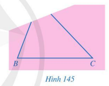 Bạn Hoa vẽ tam giác ABC lên tờ giấy sau đó cắt một phần tam giác ở phía góc A (Hình 145). Bạn Hoa đố bạn Hùng: Không vẽ điểm A, làm thế nào tìm được điểm D trên đường thẳng BC sao cho khoảng cách từ D đến điểm A là nhỏ nhất? Em hãy giúp bạn Hùng tìm cách vẽ điểm D và giải thích cách làm của mình?