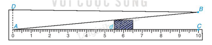 Muốn đo bề dày của vật, ta kẹp vật vào giữa bản kim loại và thước (đáy của vật áp vào bề mặt của thước AC). Khhi đó trên thước ta đọc đường “bề dày” d của vật (trên hình vẽ ta có d = 5,5mm). Hãy giả thích tại sao với dụng cụ đó, ta có thể đo được bề dày d của các vật (với d < 10 mm)