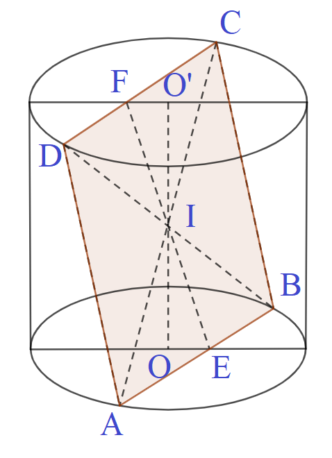 Do tính chất đối xứng của \((ABCD)\) nên \((ABCD)\) cắt \(OO’\) tại trung điểm \(I\) của \(OO’\). \(I\) cũng là giao điểm của hai đường chéo \(AC,BD\).
