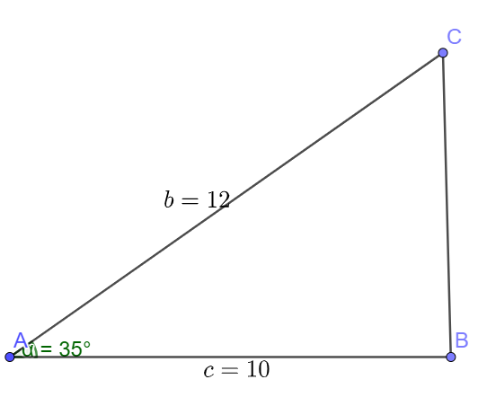 \(S = \frac{1}{2}cb\sin A = \frac{1}{2}.10.12.\sin 35^\circ  \simeq 34,41\)  (cm2)