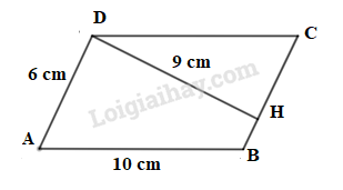 Tính chu vi và diện tích của hình bình hành ABCD (như hình bên). Biết rằng AD = 6 cm; AB = 10 cm, DH = 9cm.