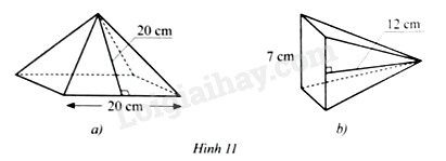 Tính diện tích xung quanh của hình chóp tứ giác đều ở mỗi hình 11a; 11b;