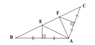 Sử dụng tổng số đo các góc trong tam giác và tam giác cân, đường trung trực của tam giác để tính số đo  góc EAF