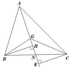 \({S_{\Delta GAB}} = \frac{{AG.BH}}{2},{S_{\Delta GCA}} = \frac{{AG.CK}}{2}\)