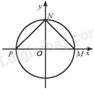 Cho ba điểm M, N, P lần lượt là các điểm biểu diễn trên đường tròn lượng giác của các góc lượng giác có số đo \(k2\pi ,\frac{\pi }{2} + k2\pi ,\pi + k2\pi \left( {k \in \mathbb{Z}} \right)\). Tam giác MNP là tam giác gì?