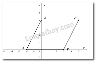 Vẽ một hệ trục tọa độ \(Oxy\) và đánh dấu các điểm \(A\left( { – 2;0} \right);B\left( {0;4} \right);C\left( {5;4} \right);D\left( {3;0} \right)\). Tứ giác \(ABCD\) là hình gì?