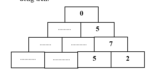 Bài 12: Điền số thích hợp vào chỗ chấm trong hình sau đây, sao cho tổng hai số nằm trong hai ô cạnh nhau trên mỗi dòng thì bằng số nằm trong ô kề với hai ô đó ở dòng trên