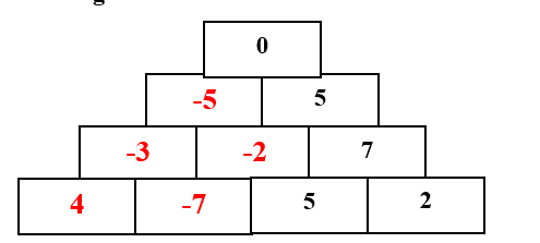 Tổng hai số nằm trong hai ô cạnh nhau trên mỗi dòng thì bằng số nằm trong ô kề với hai ô đó ở dòng trên. Ví dụ :  5 + … = 0 nên 5 + (-5) = 0.