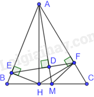 Vì HE, HF lần lượt vuông góc với AB, AC nên \(HE \bot AB,HF \bot AC\)