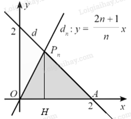 Diện tích tam giác \(OA{P_n}\) là: \({S_n} = \frac{1}{2}.OA.{P_n}H = \frac{1}{2}.2.\frac{{4n + 2}}{{3n + 1}} = \frac{{4n + 2}}{{3n + 1}}\)
