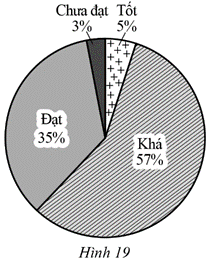 Kết quả học tập Học kì I của học sinh lớp 7A được đánh giá ở bốn mức: Tốt, Khá, Đạt, Chưa đạt. Biểu đồ hình quạt tròn ở Hình 19 biểu diễn kết quả học tập Học kì I (tỉnh theo tỉ số phần trăm) của học sinh lớp 7A theo bốn mức trên