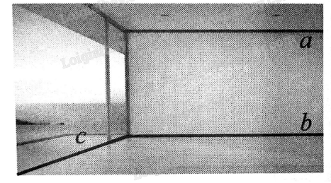 Quan sát hình căn phòng, hãy cho biết vị trí tương đối của các cặp đường thẳng \(a\) và \(b\), \(a\) và \(c\), \(b\) và \(c\).