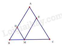 Cho tam giác \(ABC\) có \(AB = AC = 3cm\). Từ điểm \(M\) thuộc cạnh \(BC\), kẻ \(MD\) song song với \(AC\) và \(ME\) song song với \(AB\)
