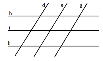 a) Các cặp đường thẳng song song là: (h;i), (h;k), (i;k), (d;e), (e;g), (d;g).