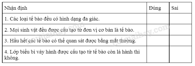 xem lại lý thuyết Bài 18. Tế bào – Đơn vị cơ bản của sự sống