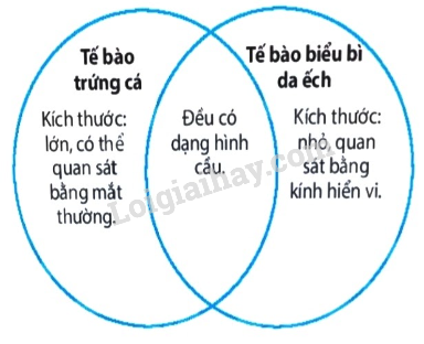 So sánh đặc điểm hình dạng, kích thước tế bào trứng cá với tế bào biểu bì da ếch.