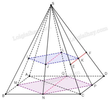 Hơn nữa \(K \in \left( {IJKL} \right) \cap \left( {SCD} \right)\) và \(K \notin JL\), \(K \notin CD\)