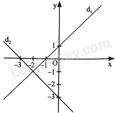 Cho các đường thẳng \({d_1}:y = x + 1;{d_2}:y = – x – 3;{d_3}:y = mx + 2m – 1\). a) Vẽ hai đường thẳng \({d_1}\) và \({d_2}\) trên cùng một mặt phẳng tọa độ Oxy.