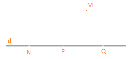 a) Đường thẳng d đi qua ba điểm thẳng hàng N, P, Q trong đó P nằm giữa hai điểm N và Q;