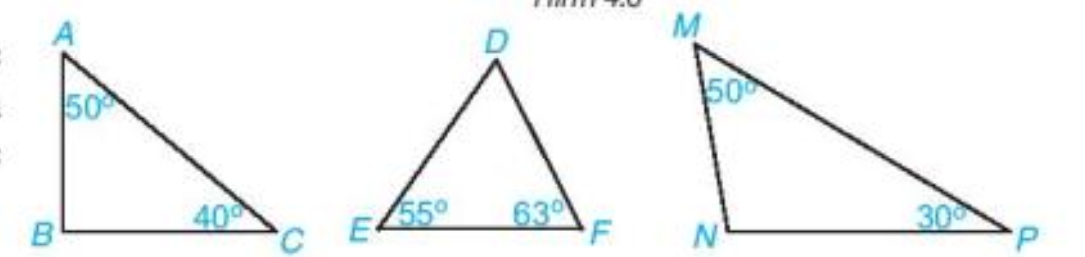 Bài 2 (4.2). Trong các tam giác dưới đây, tam giác nào nhọn, vuông, tù?