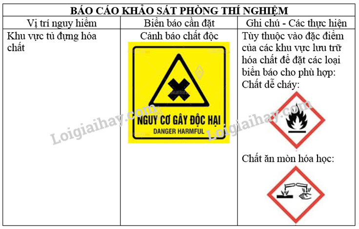 Hãy quan sát phòng thực hành của trường em để tìm hiểu xem còn vị trí nào cần đặt biển cảnh báo mà chưa được thực hiện và chỉ ra cách thực hiện.