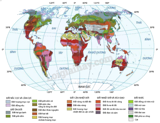 Hình 21.3. Lược đồ các nhóm đất chính trên Trái Đất