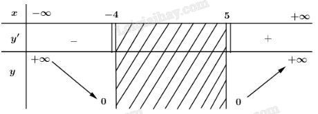 Tập xác định: \(D=\left( -\infty ;-4 \right]\cup \left[ 5;+\infty  \right).\)