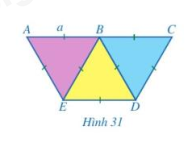 Người ta ghép ba hình tam giác đều với độ dài cạnh là a với vị trí như Hình 31.