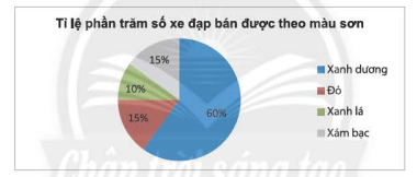 Quan sát biểu đồ tỉ lệ phần trăm số xe đạp một cửa hàng đã bán được theo màu sơn trong tháng sau đây: