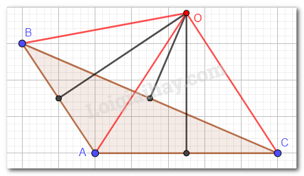 Điểm O cách đều ba đỉnh A, B, C hay điểm O chính là giao điểm của ba đường trung trực của tam giác ABC.