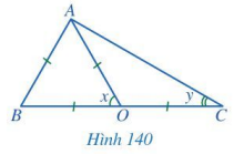 Tam giác ABO là tam giác đều nên \(\widehat {ABO} = \widehat {AOB} = \widehat {BAO} = 60^\circ \). Vậy \(x = 60^\circ \).