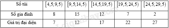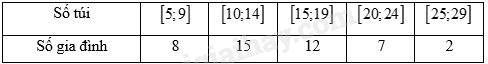 Các bạn học sinh một lớp thống kê số túi nhựa mà gia đình bạn đó sử dụng trong một tuần. Kết quả được tổng hợp lại ở bảng sau: