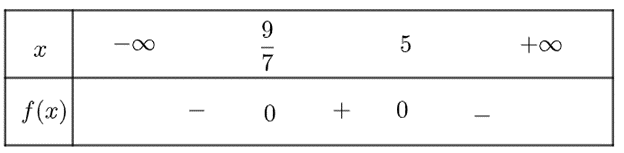 Vậy \(f\left( x \right)\) dương trong khoảng \(\left( {\frac{9}{7};5} \right)\) và âm trong khoảng \(\left( { – \infty ;\frac{9}{7}} \right) \cup \left( {5; + \infty } \right)\)