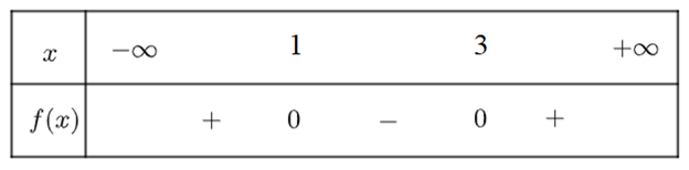 Vậy \(f\left( x \right)\) dương trên khoảng \(\left( { – \infty ;1} \right) \cup \left( {3; + \infty } \right)\) và âm trong khoảng \(\left( {1;3} \right)\)