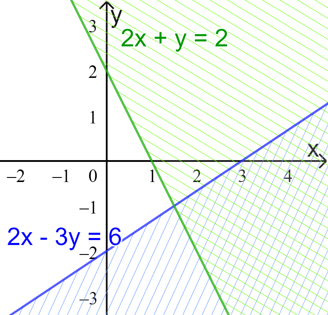 a) \(\left\{ \begin{array}{l}2x – 3y < 6\\2x + y < 2\end{array} \right.\)