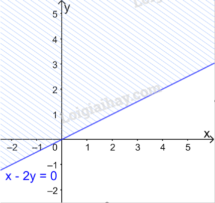 Do đó, miền nghiệm của bất phương trình là nửa mặt phẳng không kể bờ \(d’\), chứa gốc tọa độ O
