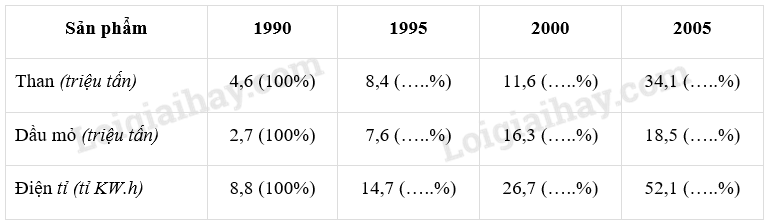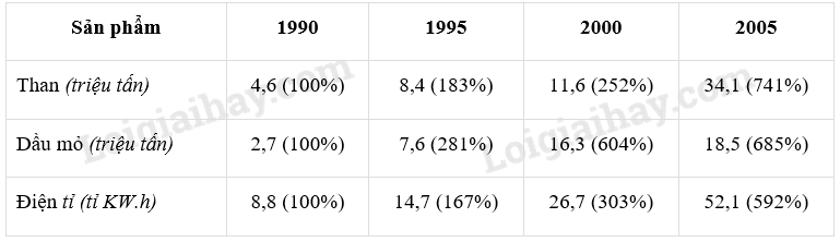 – Nhận xét và giải thích tốc độ tăng trưởng sản lượng than, dầu mỏ và điện của nước ta trong giai đoạn 1990 – 2005.
