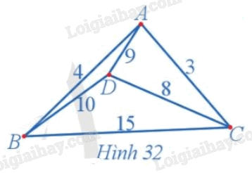 Có bốn địa điểm với độ dài quãng đường giữa các địa điểm (đơn vị: kilômét) mô tả trong Hình 32.