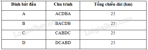 Các chu trình trên thỏa mãn điều kiện xuất phát từ một đỉnh đi qua tất cả các địa điểm, mỗi địa điểm đúng một lần và tổng độ dài các cạnh của chu trình là nhỏ nhất.