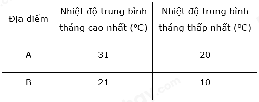 Tháng 3 – tháng 9: địa điểm A có nhiệt độ cao, trong khi đó địa điểm B nhiệt độ lại thấp.