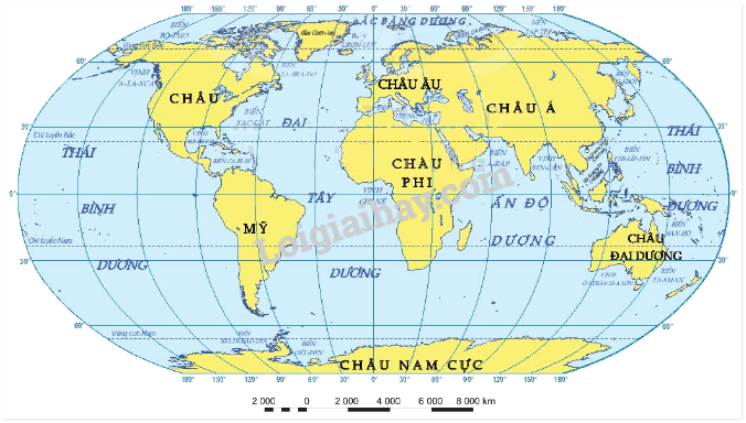 Cho biết tên của các đại dương trong lược đồ sau: