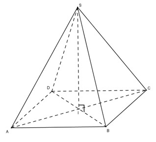 Cho hình chóp tứ giác đều \(S.ABCD\) có tất cả các cạnh đều bằng \(a\). Hãy xác định tâm và bán kính mặt cầu ngoại tiếp hình chóp đó.