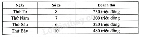 Bảng 1 thống kê số lượng xe máy bán được (loại có giá chưa đến 50 triệu đồng/xe) và doanh thu mỗi ngày trong 4 ngày cuối tuần của một cửa hàng điện máy.