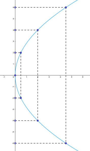 Bước 3: Vẽ đường parabol bên phải trục Oy, đỉnh O, trục đối xứng là Ox, parabol đi qua các điểm được vẽ ở Bước 2