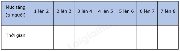 Dựa vào biểu đồ, tính thời gian dân số tăng thêm 1 tỉ người và ghi vào bảng theo mẫu sau. Nhận xét về tốc độ tăng dân số thế giới.