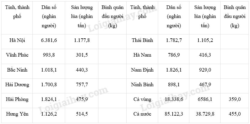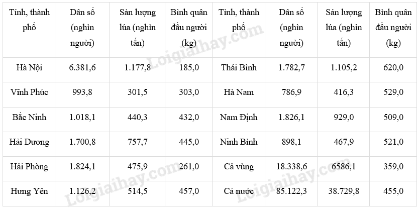 * Nhận xét sản lượng lúa cả năm bình quân theo đầu người giữa các tỉnh, thành phố.