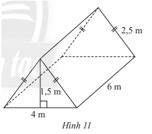 Một chiếc lều trại có hình dạng và kích thước như Hình 11. Tính tổng diện tích tấm bạt có thể phủ kín toàn bộ lều (không tính mặt tiếp giáp với đất) và thể tích của chiếc lều