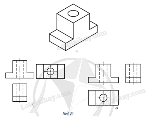 Cho vật thể ở Hình 39a. Hãy cho biết các Hình 39b và Hình 39c, hình nào bố trí đúng các hình chiếu vuông góc của vật thể? Tại sao?